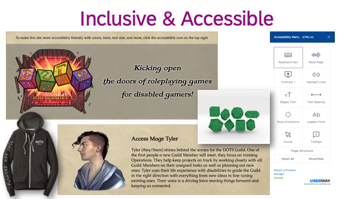 - https://www.dotsrpg.org/ - You can download the plans for the dice for free if you have a 3d printer. Otherwise, they have loads of stuff that make playing table top games more accessible and on their staff are people who contribute to the project through their own experiences of requiring accessible products and services.