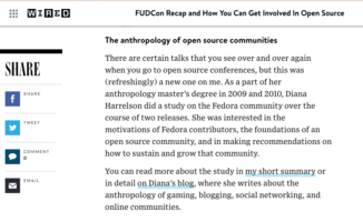 - Presenting at FUDCon on my Fedora Research. I presented a paper at the FISL 14 Free Software Conference or you can read my report to the Fedora community. The following screens show a few examples of how my research was received and applied.